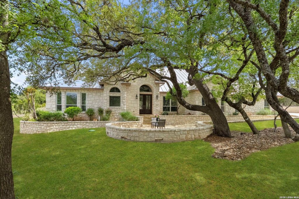 This beautiful, single-story home is nestled on 4.42 sprawling acres with mature trees behind a private gated entrance! The open floor plan is highlighted by detailed tile and hardwood flooring, ceiling treatments, crown mouldings and an abundance of natural light streaming through Pella windows and plantation shutters. At the heart of the home, the warm and inviting great room features a stunning wood-burning stone fireplace, custom built-in shelving and picturesque views of the private backyard. This space flows effortlessly into the gourmet kitchen and breakfast nook-perfect for both everyday living and effortless entertaining. The island kitchen offers a wraparound seating bar, generous workspace, custom cabinetry, stainless steel appliances and a convenient adjacent home management center. The separate dining room provides an ideal setting for Sunday brunches and holiday gatherings, complete with tranquil property views and a buffet area accented by glass-front cabinetry. Working
