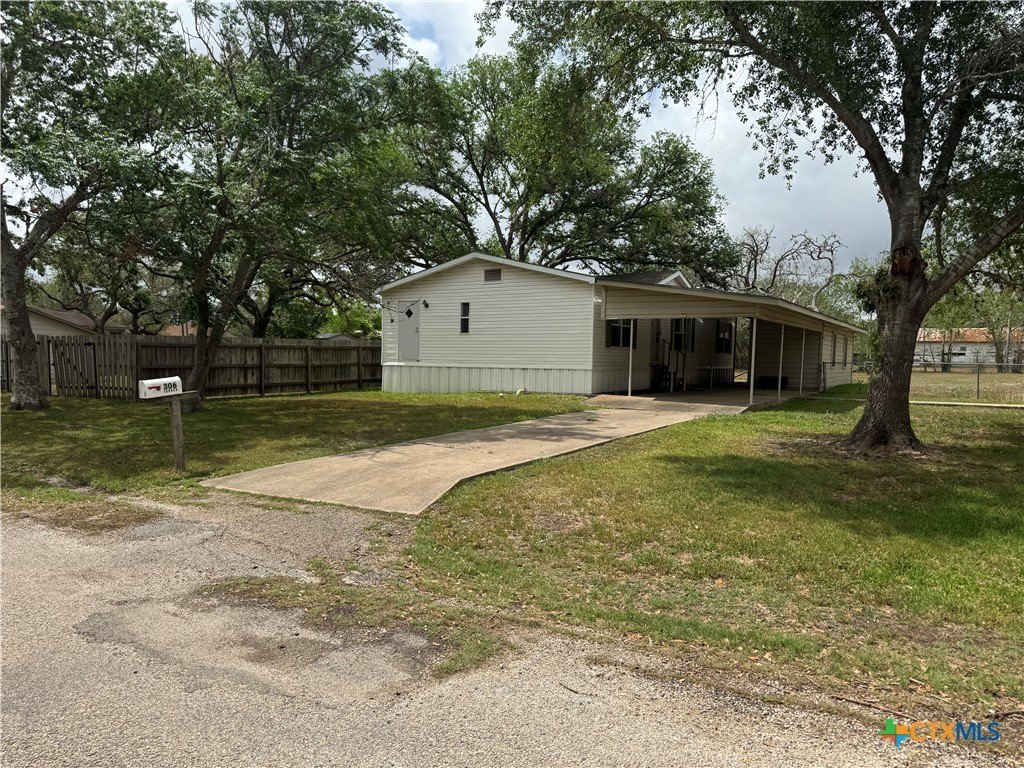 This 1,300 sq ft manufactured home with 3 bedrooms, 2 baths has a large carport, shade trees, and an 8 x 30 storage building and garden shed. The home features a nice kitchen, range stove, vent hood, dishwasher, breakfast bar and dining area, ample cabinets. The split floor plan has the Primary bedroom with separate garden tub and shower, inside laundry. Nice space in the backyard fenced on 2 sides, it is a great place to raise a family. It is near the city park to take the kids to playgrounds, etc. The home has been well maintained.