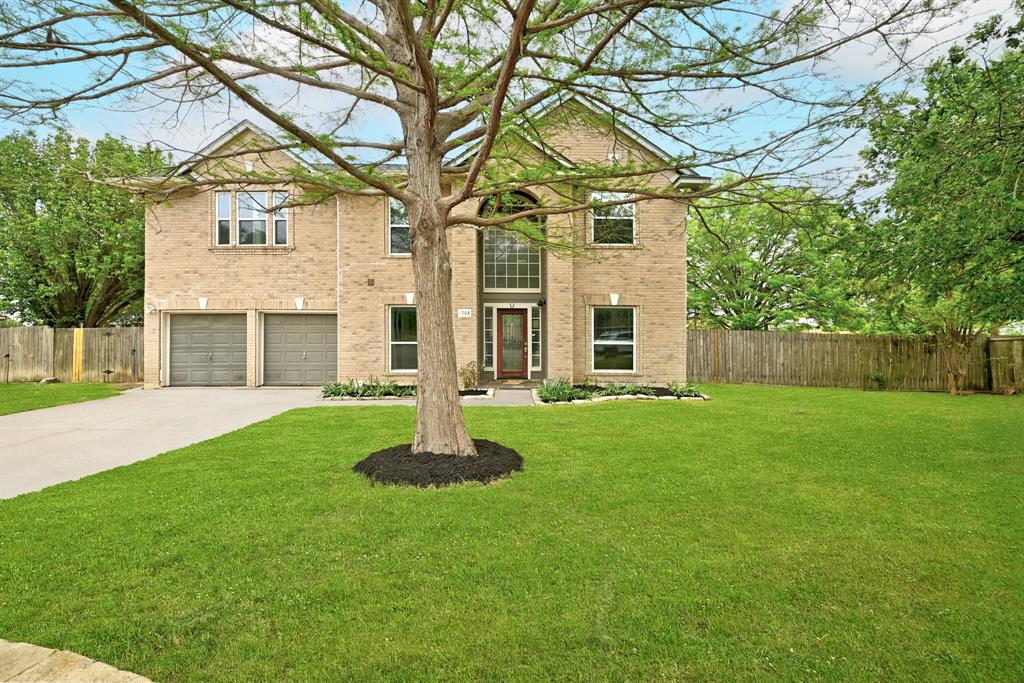 Tucked away on a cul-de-sac in the well-established Saxony neighborhood, this beautifully updated home sits on an oversized lot shaded by mature trees, offering both space and privacy in a setting that feels like home the moment you arrive. Step inside to a light-filled layout with no carpet throughout, creating a clean, modern feel that’s both stylish and easy to maintain. The main living area is warm and inviting, centered around a cozy fireplace and open to the kitchen and dining spaces, making it perfect for everyday living and gathering with family and friends. The kitchen offers great functionality with ample cabinet space, a new dishwasher (2026), and all appliances convey, making move-in a breeze. Just off the main living area, you’ll find a dedicated home office with glass French doors, ideal for working from home or creating a quiet retreat. Upstairs, a spacious game room provides the perfect flex space for movie nights, a playroom, or a second living area. The primary suite is generously sized, while two additional bedrooms offer comfort and versatility for family or guests. Step outside to enjoy the expansive backyard, complete with a newly replaced back fence (2026) and plenty of room to relax, play, or even add a pool. The mature trees create a peaceful backdrop you don’t often find. With thoughtful updates like a brand new roof (2026), a functional layout, and a generously sized lot, this is the kind of home that checks the boxes and feels right the moment you walk through the door. Enjoy the convenience of Saxony’s location with easy access to nearby shopping, dining, major roadways, and everyday essentials. This is a must-see.