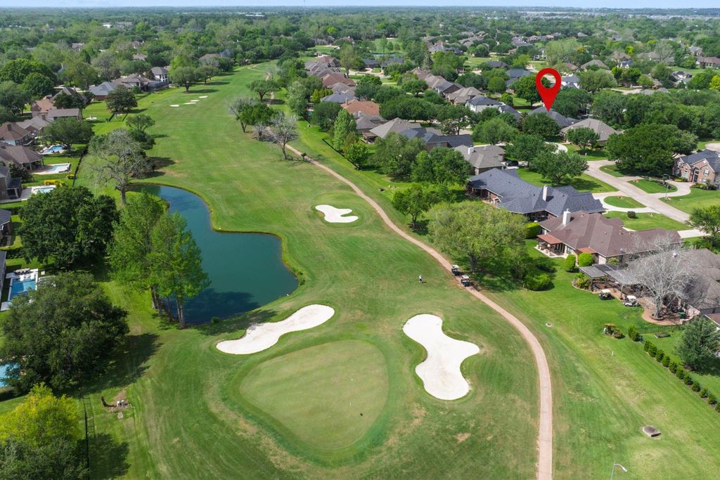 Extraordinary Single-Story home on a private ½-Acre lot with 3,967 sq. ft., beautifully blending brick and stone. Enjoy a stunning chlorine Pool with mature landscaping for near-total privacy. Inside, wood floors, designer tile, granite surfaces, dramatic raised ceilings, crown molding, 8' Mission-style doors, and custom window coverings create elegance throughout. Family Room features a floor-to-ceiling stone Fireplace. Island Kitchen with custom cabinetry and double ovens. Luxurious Primary Suite with sitting area, seamless double-sided glass shower, 2 large Closets and huge soaker Tub. Media Room with screen and projector. Flexible floor plan: 4 bedrooms or 2 studies. Two Covered Back Patios with Summer Kitchen, Whole-House Generator, and low taxes. Residents enjoy Hale Irwin–designed golf course, pickleball & tennis courts, parks, pools, casual grill, country club, and fitness center. Elegance, privacy, and lifestyle in one exceptional home!