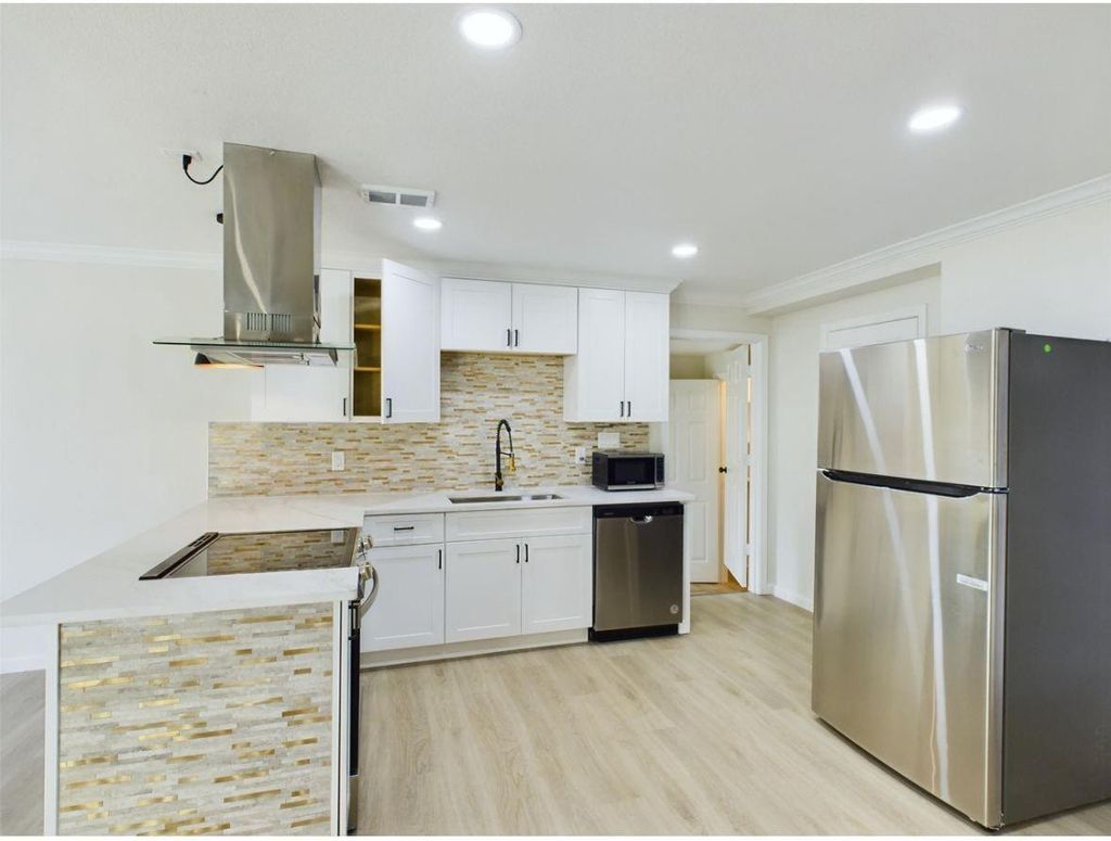 Fully remodeled 3-bedroom, 2-bath home offering a fresh, modern interior and functional layout. The kitchen features quartz countertops, stainless steel appliances, a pantry, and opens to a bright breakfast/dining area. A spacious utility room is conveniently located just off the kitchen for added functionality and storage. Recent updates include new flooring, new windows, a new roof, and beautifully renovated bathrooms. The primary bedroom features its own en-suite bath. Out back, enjoy a covered patio overlooking a generously sized yard—perfect for relaxing or entertaining. A great option for anyone looking for an updated home at a solid value.