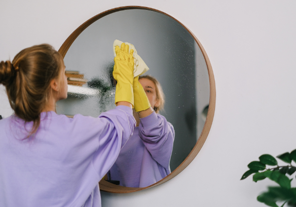 Take the time to wash the mirrors and windows so natural light will reflect and brighten the room. Don’t forget to wipe doors to remove fingerprints and residue from those frequently-touched areas around the doorknob or edge of the door.