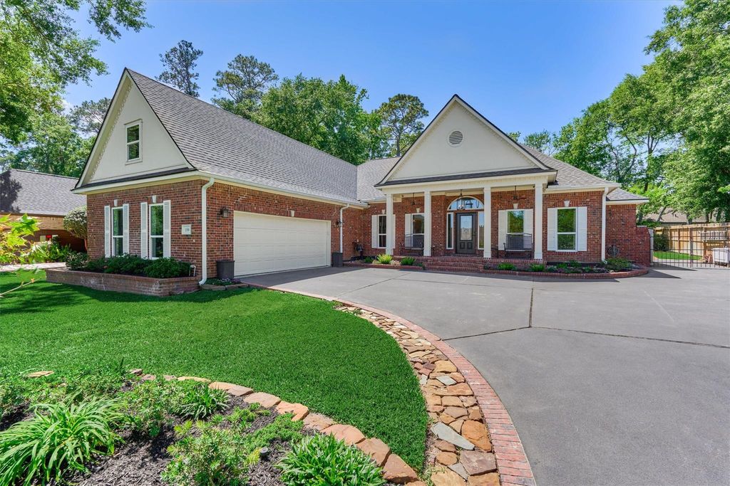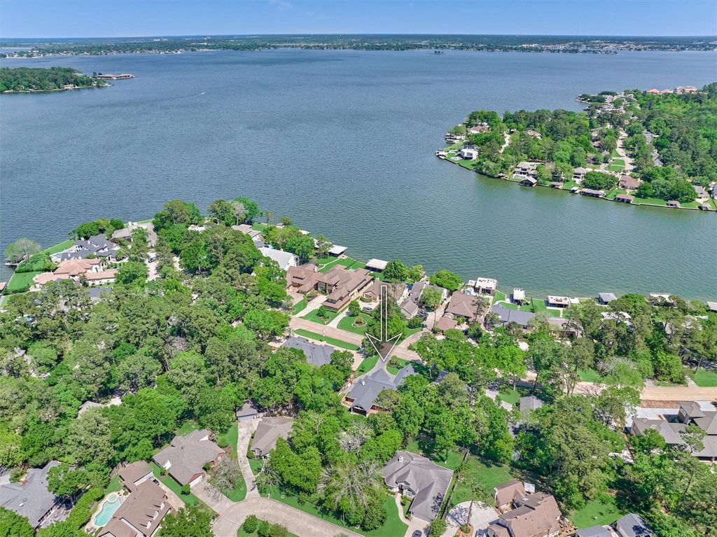 This beautifully crafted 1.5 story home is situated on a double lot & showcases an array of custom features & thoughtful design elements! Warm red oak wood floors flow seamlessly on the first floor. Incredible Chef's kitchen w/ large island, double ovens, granite countertops & abundant storage space! Open concept floorplan w/ living area open to kitchen & breakfast room. Lovely primary suite w/ double doors out to backyard. Updated en-suite bath w/ dual sinks, knee space & oversized walk-in shower plus tons of storage! 2 additional bedrooms plus full bath and half bath on first floor. 4th bedroom upstairs could easily be used as craft space, playroom or exercise space w/ its own full bath. Beautiful covered patio & outdoor space designed for relaxation & a chance to enjoy nature's beauty while sipping morning coffee! Located across the street from Lake Conroe! Generac whole home generator, 2 yr. old roof plus attached list of extensive improvements!