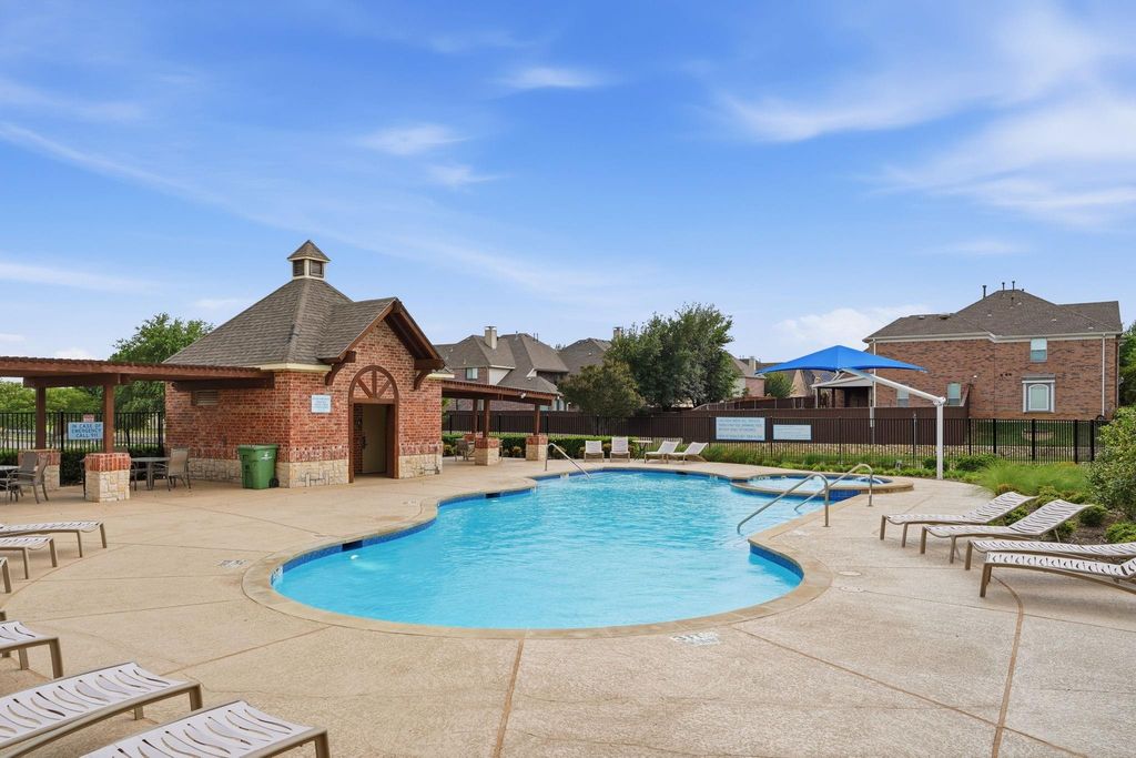 A rare 0.518 acre corner lot in Moore Farm, set on a cul de sac with access to the Tidal Park Trail and parks nearby. Enjoy outdoor space that is hard to find in this area, plus a location that supports daily walks and easy neighborhood access. This five bedroom, four full bath home offers 3,859 SF per assessor with a functional two story layout and multiple living areas, including a main living room with a gas starter fireplace and a separate game room for flexible use. Recent improvements add meaningful value. In 2026, the garage door, exterior doors, and interior paint in the kitchen, bedrooms, and bathrooms were refreshed. In 2025, the front yard was enhanced with custom landscaping, shrubs, sprinklers, and a stone retaining wall, plus a new front sidewalk. The kitchen refresh in 2025 included cabinets fully disassembled, stripped, and repainted, along with updated light fixtures and chandelier and new electrical wiring, switches, and plugs in the kitchen. Additional updates include new drawer and cabinet hardware in the kitchen and bathrooms, a custom built in entertainment console and shelving in the living room, and custom shelving in the butler pantry walkway area. Primary bath plumbing connections and piping were updated prior to the last major freeze. A new alarm system with keypad door and customized sensors on exterior doors and the garage door adds security. The kitchen features granite countertops, island, breakfast bar, and pantry, opening to a breakfast area with built in cabinetry. The primary suite includes a sitting area, dual sinks, garden tub, and a walk in closet. Covered patio, rain gutters, and a two car attached garage. Neighborhood amenities include a community pool, playground, and jogging paths and trails, plus walking distance to Oak Hills Splash Park. Lewisville ISD including Hebron Valley Elementary, Creek Valley Middle, and Hebron High. Schedule your showing to experience the lot size, cul de sac setting, and trail access.