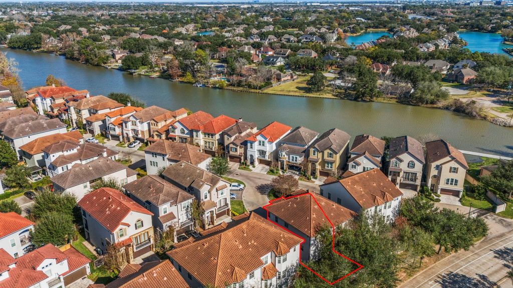 Rare Find! Fabulous luxury townhome in sought-after The Enclave At Lake Pointe, a gated waterfront community in the heart of Sugar Land. High ceilings and expansive windows create a bright and welcoming atmosphere, enhanced by professional interior design. This home features an ELEVATOR, rich wood flooring and energy-efficient windows. The 1st fl includes a private bedroom with en suite bath and patio access—ideal as a home office, guest suite or in-law suite. The 2nd fl showcases a spacious great room with a central fireplace, seamlessly flowing into the dining area and gourmet kitchen. An island with breakfast bar anchors the kitchen, complemented by new 2025 appliances, including a gas cooktop and convection oven. Luxurious primary suite and a secondary bedroom, both with en suite bathrooms are located on the 3rd fl. Numerous recent updates. Relaxing patio with pergola and beautifully updated landscaping. Minutes from premier shopping, dining, parks and convenient freeway access.