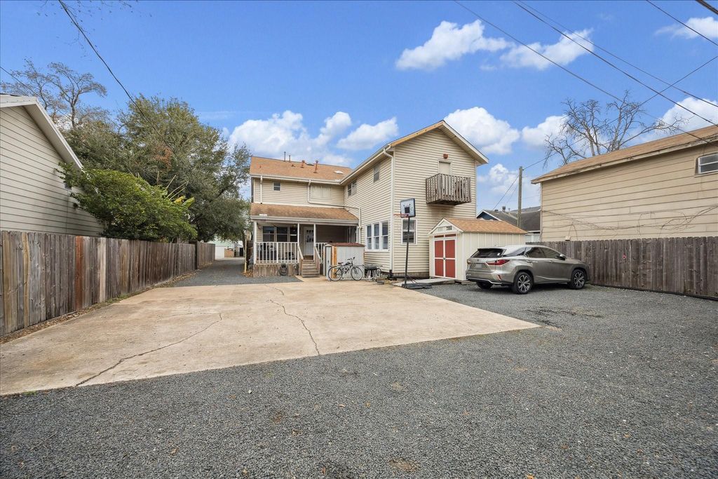 Welcome to 240 W 23rd St, ideally located in sought-after Houston Heights with easy access to popular dining, shopping, & local parks. Charming 2 story home with flexible living spaces & great natural light. Welcoming entry showcases classic wood trim details leading into a spacious living room, ideal for gathering, relaxing, or entertaining. Large kitchen offers extensive cabinetry, great prep space, built-in storage, plus a large range with vent hood and opens to the dining area offering space for hosting meals & everyday dining. Dedicated home office with French doors, plus an additional built-in desk area in the hall is great for a study nook or work-from-home setup. 8 spacious and versatile bedrooms each with direct access to a full bath. Wonderful front porch overlooking a fenced in front yard. Large parking area in the front and back of the home provides extra parking space. Great opportunity with space, function, & character all in one!