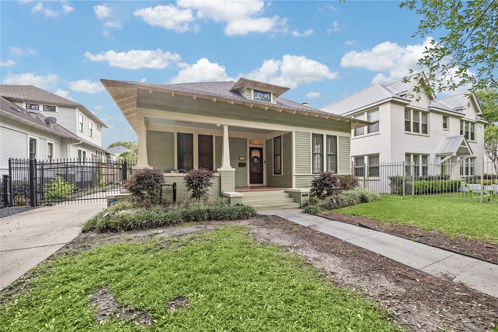 Step into this well-maintained bungalow, a gem from 1916 in sought-after Historic Houston Heights. With a layout exuding sophistication and charm, this home boasts fresh paint, wood floors, high ceilings, ample natural light, two bedrooms, one and a half bathrooms, a cozy living and dining area, a bright spacious kitchen, and a tranquil backyard perfect for morning coffee or relaxing with a glass of wine. Newly remodeled kitchen and laundry room, oversized garage perfect to turn into a guest apartment or studio space, electric gate. New HVAC, electrical and security systems. Just a stroll away from parks, shops, restaurants, and scenic bike and walk trails. Showings require 24-hour notice to relocate the dog. Your understanding is appreciated!