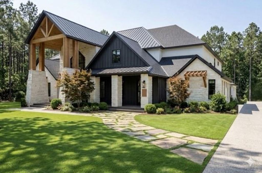 Luxurious country living features over 6,886 sq. ft. poised on 1.6 acres in highly sought after High Meadow West! Get away from all the city noise and come home to your country estate in this quiet acreage community! Custom home with separate guest quarters! Features 6 bedrooms and 6.5 baths! Metal roof highlights, wood accents, features modern luxury and timeless elegance. The grand entry opens to soaring 30 ft cathedral ceilings! Features commercial-grade double-pane windows boasting plenty of natural light. The primary suite is a serene retreat with dual walk-in closets, features a 2-story “her” closet! Chef’s gourmet kitchen! Designed for seamless indoor-outdoor living, enjoy a large covered porch, dedicated pool room. Gameroom and gym on the 2nd level! Still time for buyer to select their finishes! Target Delivery – Summer 2026 - Optional pool shown is not included in price.