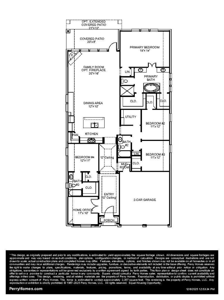 Extended entry highlights 12-foot coffered ceiling. Home office with French doors set at entry. Dining area flows into open family room with wall of windows and wood mantel fireplace. Open kitchen offers extra counter space, a 5-burner gas cooktop, corner walk-in pantry and generous island with built-in seating space. Spacious primary suite. Double doors lead to primary bath with dual vanities, a freestanding tub, separate glass-enclosed shower and two walk-in closets. Private guest suite with full bathroom and walk-in closet. All bedrooms include walk-in closets. Extended covered backyard patio. Mud room off two-car garage.