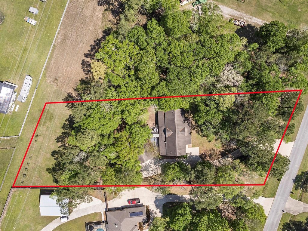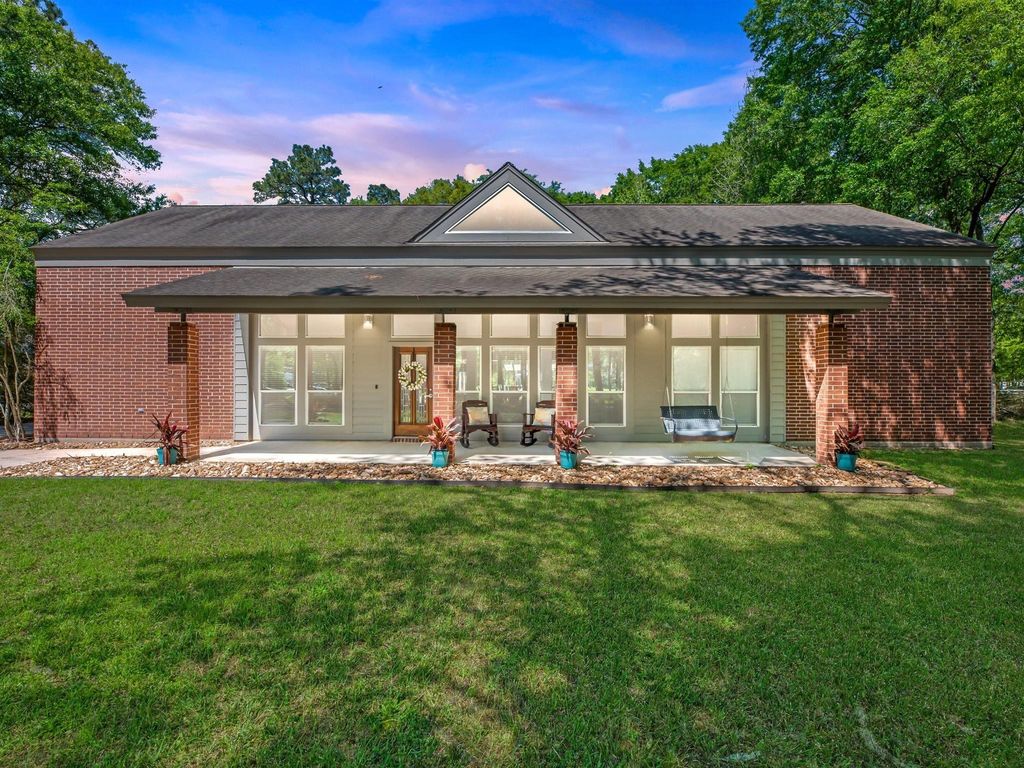 Owner is an Architect and designed this one of a kind all brick home! Privately nestled in the trees sitting on 1.36 acres. Detached garage has been converted into office space with a wall but wall can be taken down to accommodate vehicles. High ceilings thru out. Exotic marble and wood used artfully throughout. The kitchen has a European minimalist sort of feel but with tons of storage and stainless gas cooking and commercial grade hardware. Polished tile floors in kitchen and dining. Wood floors in family room and formal living areas. There are two owners' suites, each with an en-suite bath shower and walk in closets. Custom lighting designed to highlight the architectural elements throughout the home. Front and Back covered patios. Huge laundry room with storage area. Recently replaced garage door, 2 water heaters, replaced some windows and other upgrades listed in disclosures. Close to 99 and Hwy 69. Low taxes and horses and other livestock welcome.