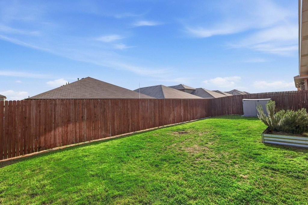 This thoughtfully designed home blends modern finishes with everyday functionality in all the right ways. From the moment you step inside, you’re greeted by a spacious, open-concept layout that feels both inviting and highly practical—perfect for entertaining, relaxing, or simply enjoying daily life. At the heart of the home is a beautifully appointed kitchen that checks every box. Featuring a gas cooktop and oven, expansive cabinetry, sleek granite countertops, and a large center island, this space flows seamlessly into the living area, making it ideal for gatherings or keeping everyone connected. Whether you're hosting or cooking a quiet dinner at home, this kitchen delivers both style and performance. The common areas are enhanced with durable and stylish wood-look tile flooring, offering the warmth of hardwood with the ease of maintenance—perfect for busy households. The open layout maximizes both space and natural light, creating a bright and welcoming atmosphere throughout. Convenience continues with a generously sized laundry and utility room, providing ample space for storage and organization—something you’ll appreciate every day. Step outside and enjoy a location that’s hard to beat. Situated just a block from the elementary school and a nearby community park, daily routines become easier and more enjoyable. The neighborhood also offers exceptional amenities, including a community pool complete with a relaxing lazy river—perfect for cooling off during those warm Texas summers. Energy efficiency is another standout feature, with solar panels already installed to help provide more predictable and potentially lower energy costs—an increasingly valuable benefit. This home's modern construction, functional design, terrific value, and desirable community features offers the complete package for comfortable, connected living. **OPEN HOUSE SATURDAY 11-1 and SUNDAY 1-3**