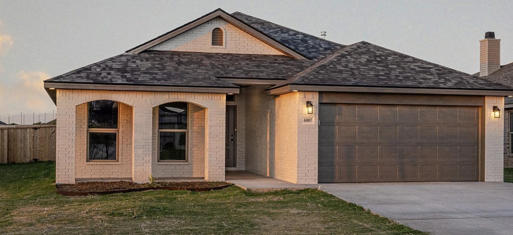 BUY NOW and get $8K use-it-your-way cash. Our thoughtfully designed Tanya floor plan offers a blend style and functionality at the most affordable price for home buyers in West Texas! The Tanya floor plan features a beautiful brick exterior accented by double columns framing the covered front porch. The home has luxury vinyl plank flooring throughout. An open-concept kitchen, living, and dining area, and granite countertops. The spacious kitchen peninsula with bar seating, stainless steel appliances, enclosed pantry, and premium plumbing and lighting fixtures make the home look elegant. The secluded master suite with walk-in closet and covered back patio are nice luxuries. Front and Backyard sod and sprinkler included.