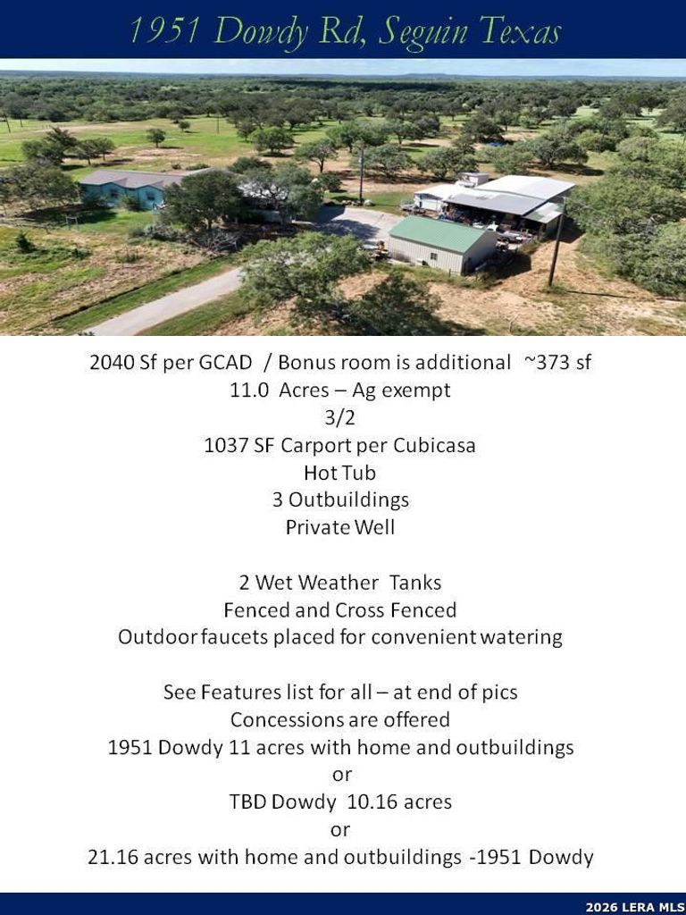 Wonderful views of the countrywide giving one a peaceful view that comes with LOW taxes. Discover your own ag exempt 11 acre Texas ranch. No water bill--your own water well that has been tested for water quality every year to ensure good drinking water for you and your and your livestock. So many extra features to list. Set behind a remote-controlled gated entrance, this ag-exempt Texas ranch offers privacy, usability, and well-considered improvements throughout. A paved concrete and asphalt drive provides clean, dependable access to the residence in all seasons. The home is designed for comfortable daily living with generous room sizes with a functional layout. The kitchen anchors the residence, featuring a substantial granite island, abundant cabinetry, and ample workspace, making it well suited for both everyday use and entertaining. In addition to the main living area, a versatile bonus room provides flexible space ideal for a private office, studio, or hobby room. The primary bath