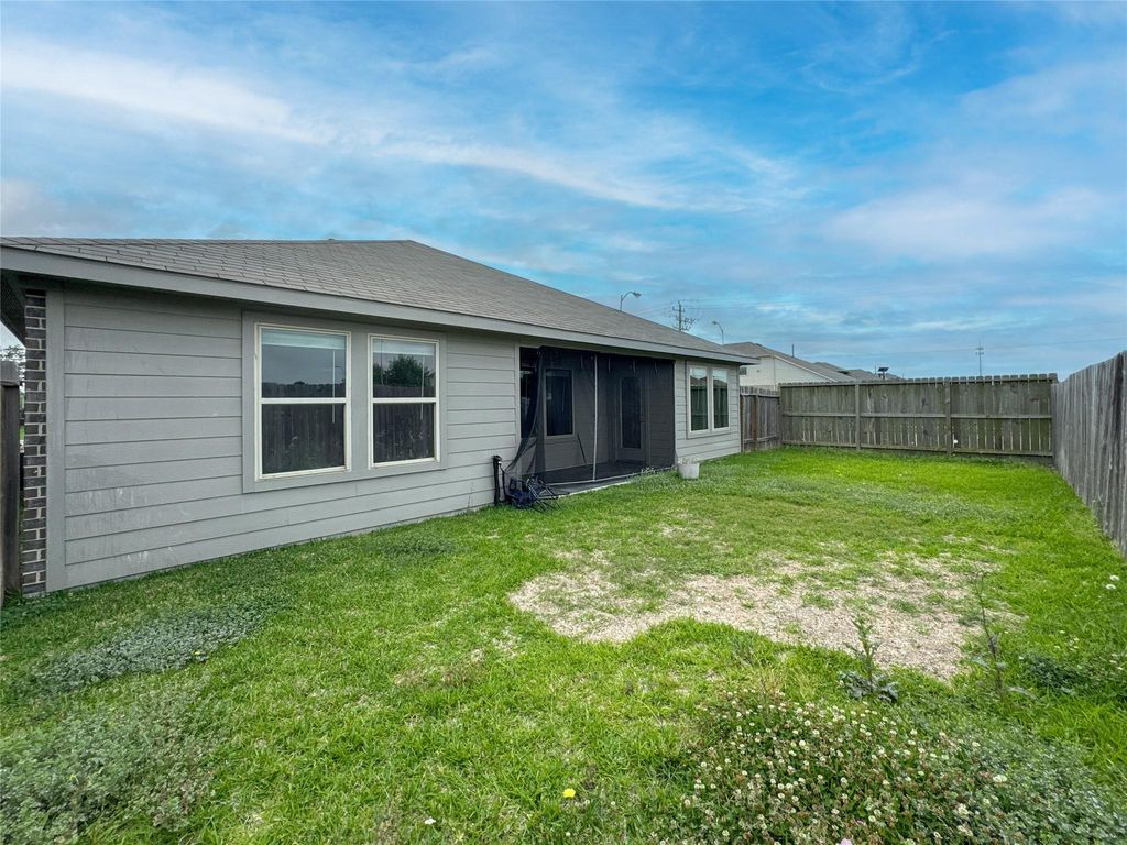 MOTIVATED SELLER —BRING AN OFFER! This move-in-ready home at 8203 Tamarind Lane features a modern, open floor plan that connects the spacious family room directly to the kitchen. The interior includes a comfortable main bedroom with an en-suite bathroom and closet. Outside, you will find a fully fenced backyard with a covered patio, perfect for relaxing. Located in the Springfield Estates community, this property offers a great location with easy access to everything Baytown has to offer. This property is being sold AS-IS.