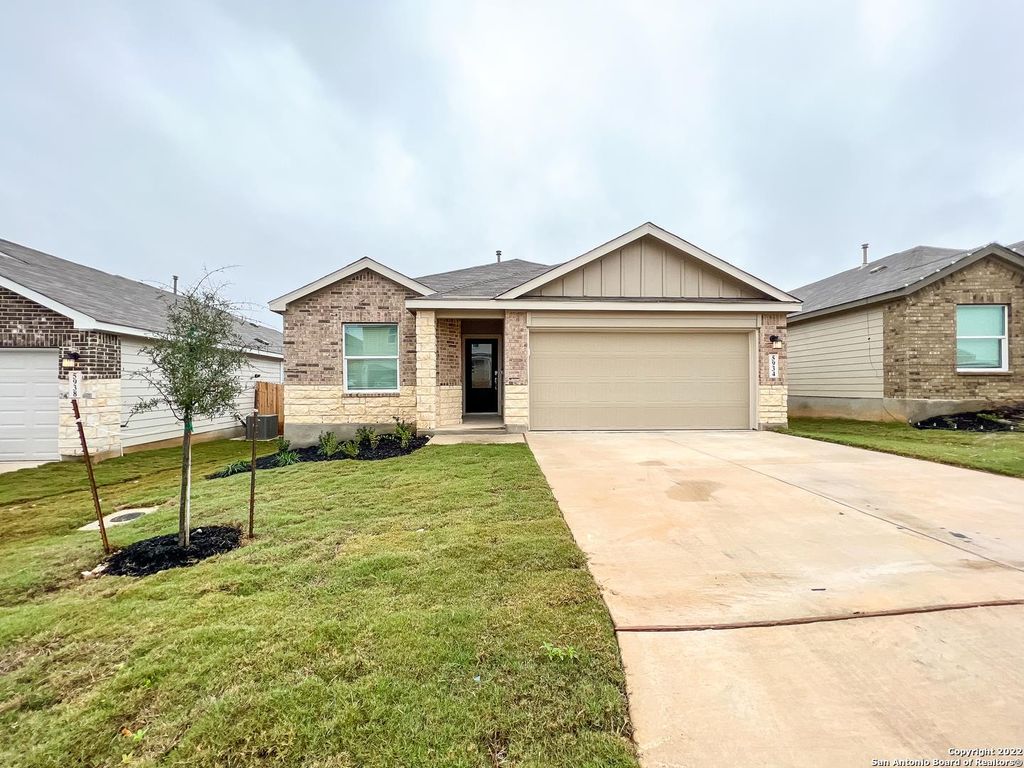 This openconcept home features White Shaker kitchen cabinets, gray granite countertops, and a large island with breakfast bar, perfect for casual dining and entertaining. The kitchen is equipped with a stainless steel builtin microwave and gas range, offering both style and functionality. Designed with a split floor plan, the home provides privacy and flexibility. The primary suite is a relaxing retreat with an ensuite bathroom showcasing a double vanity, granite countertop, and a spacious walkin shower. In addition to the primary suite, there are three additional bedrooms, or the option to use one as a flex room-ideal for a home office, gym, or playroom.