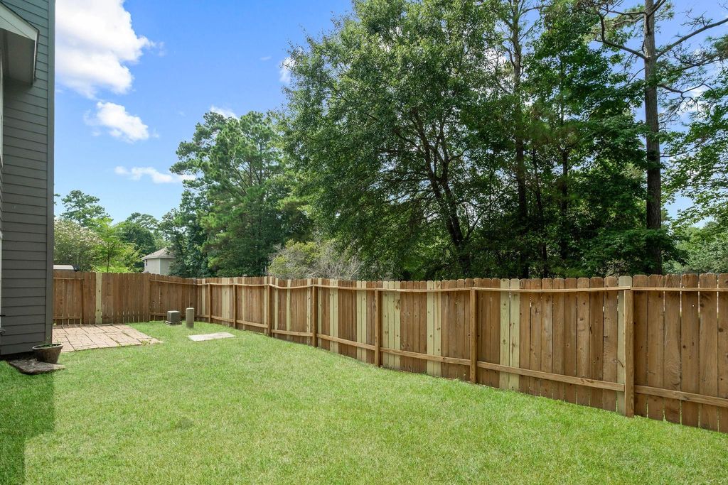 Welcome to your beautifully renovated townhome, perfectly nestled in a quiet cul-de-sac with easy access to SH-242 and I-45. Prime Location!! Zoned to the highly-acclaimed Powell Elementary and The Woodlands High School. This bright, airy home features 3 bedrooms, 2 full bathrooms and a modern open-concept kitchen/living combo flooded with natural light. Painted in neutral tones with ceiling fans for year-round comfort. Premium upgrades include stunning laminated floors throughout the main areas, Absolutely NO CARPET!! and elegant tile floors in the bathrooms with quartz countertops. Kitchen with sleek granite countertops, **Refrigerator, washer and dryer are included. Enjoy a private fenced backyard. Experience low-maintenance luxury in a prime location!