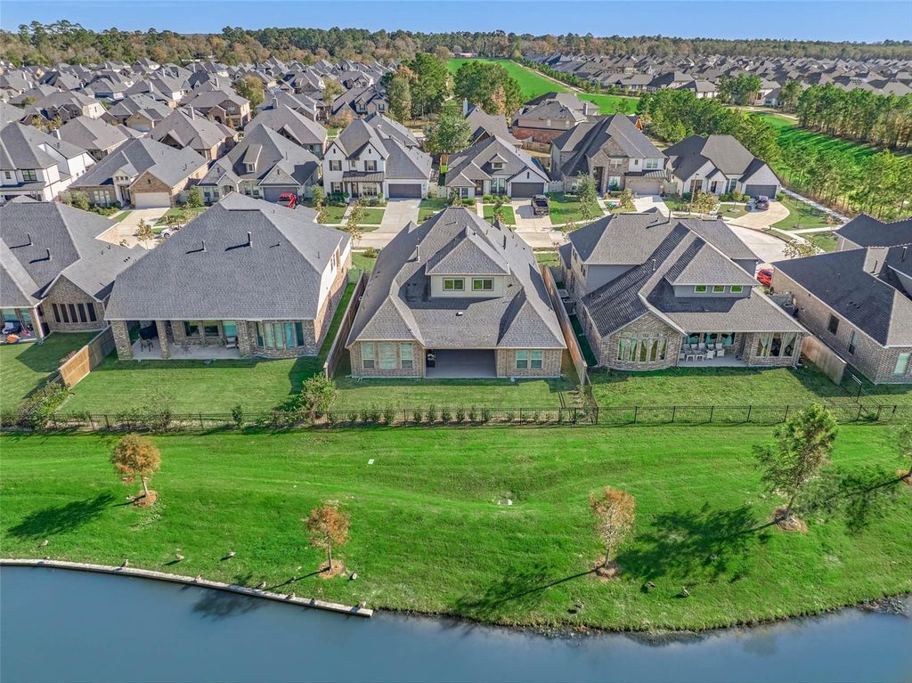 TREMENDOUS VALUE with this "like new" 1.5 story gem in gated Harper's Preserve will not disappoint with clubhouse, pool, parks, ponds, trails, and close proximity to premier shops, restaurants + entertainment in The Wdlds! Convenient to major thoroughfares, this home boasts over $50K in upgrades and situated on a sprawling, waterfront lot w/no rear neighbors or walking path to ensure ultimate privacy! Versatile floor plan includes an open-concept floor plan with designer block island kitchen w/bar seating, great room w/a wall of windows overlooking a stunning backyard oasis w/water views, premium vinyl plank flooring, secluded owners retreat w/plush bath & XL primary closet, enclosed study, and large dining area! All en-suite secondary bedrooms including a guest suite + game room upstairs! Incredible storage, gutter system, oversized covered patio with gas connection, and gate for private access to lake! Zoned to top-ranked schools; low tax rate; high & dry; BEST VALUE in area!