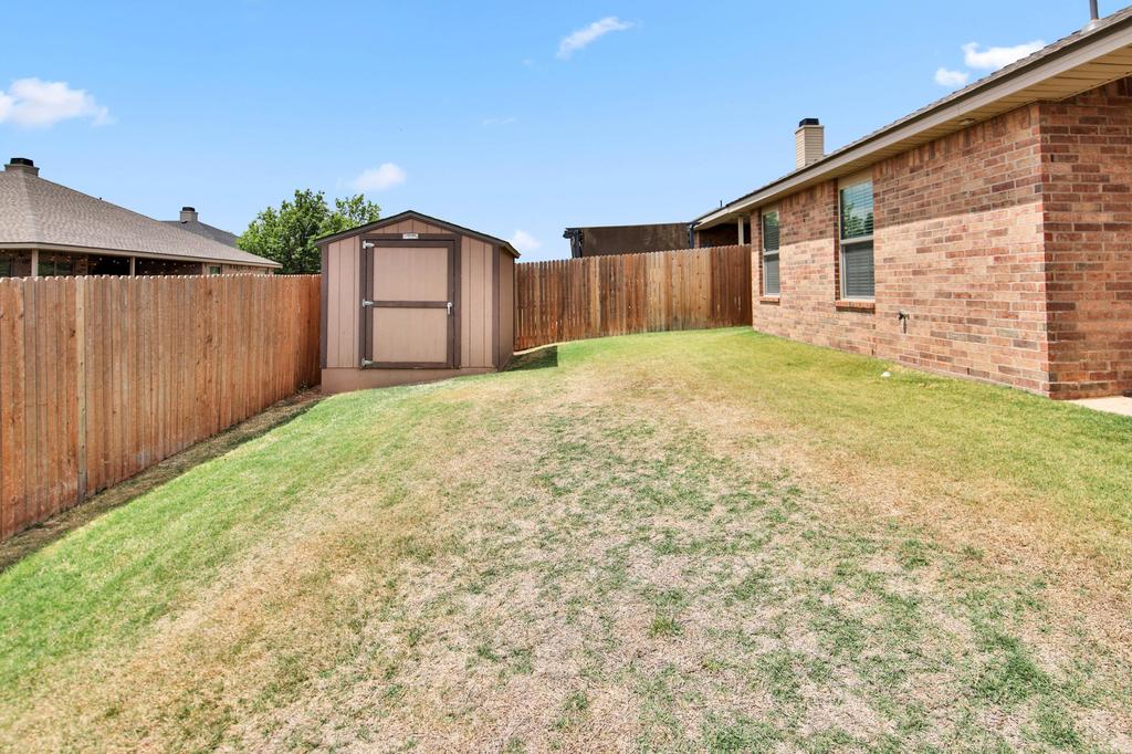 Welcome to this beautifully maintained 3-bedroom, 2-bath home offering 1,586 sq. ft. of comfortable living space in a desirable Lubbock neighborhood. Designed with both style and functionality in mind, this home features an open-concept family area with soaring 8- and 10-foot ceilings and a cozy brick fireplace, perfect for relaxing or entertaining. The kitchen is a standout with granite countertops, maple cabinetry, ceramic tile flooring, under-cabinet lighting, and a new coil top range. The spacious primary suite provides a private retreat with plenty of room to unwind. Additional highlights include ceiling fans throughout, cable outlets in all bedrooms, Energy Star double-pane windows for efficiency, and thoughtful upgrades like eyeball lighting, soffit plugs, and a keypad garage entry. The home also features a 2-car garage with attic access and lighting for added storage convenience. Enjoy outdoor living with covered front and back porches, exterior lighting, and a Tuff Shed for extra storage. Major updates provide peace of mind, including a new roof, fascia, and garage door (2025), along with new blinds throughout. This move-in ready home combines modern updates, energy efficiency, and practical features making it a must-see!