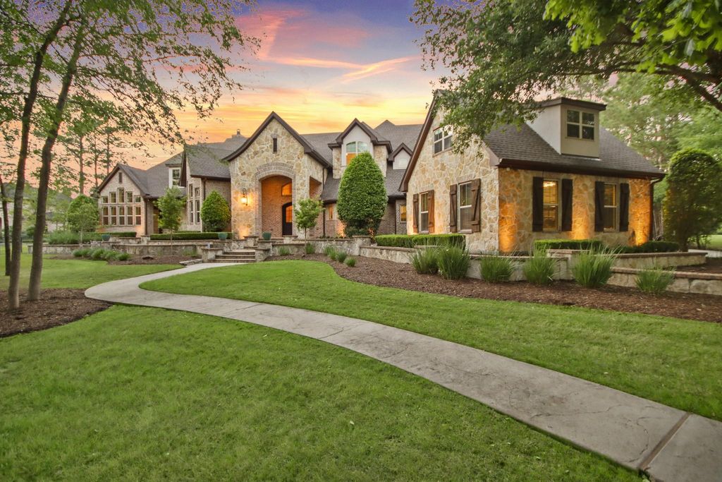Step into timeless charm with this beautifully appointed French country home, where rustic elegance meets modern comfort. Nestled on approximately 2.5 wooded acres ( 2 lots) with golf course views of hole 2 fairway. Oversized 4 car garage with washer/dryer and epoxy floors. Whole house generator 38KW & well for pool & irrigation. Magnificent dining and family room with vaulted ceilings and stone fireplace, private home office or study, primary suite also includes a hidden office, exercise room, guest suite down with private bath, a chefs kitchen with professional appliances including warming drawer, steam oven, ice maker, built in refrigerator and wine cooler. Upstairs two secondary bedrooms, a game room, balcony with storage room and a library or game room. Incredible backyard with sparkling pool, spa, outdoor lighting, summer kitchen with Wolf grill and fireplace. Craft room above the garage with 1/2 bath. Roof 2020, HVAC coil Feb 2026, recent aluminum fence.