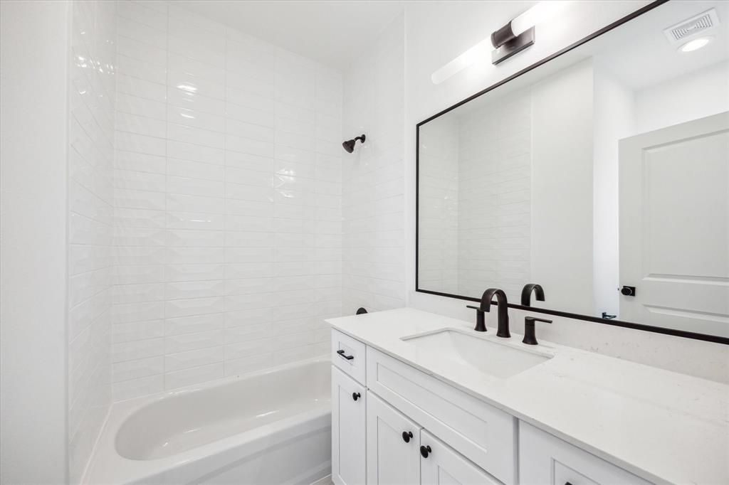 Arcada Homes, known for innovative design and meticulous execution, presents The Villas at West 23rd—seven modern urban retreats in the heart of Shady Acres. This inner home showcases a striking two-toned Hardie exterior in peppercorn gray and pure white. Inside, Dakota Oak LVP flooring flows throughout, with no carpet in sight. The first-floor bedroom features an ensuite bath and a spacious closet for privacy and comfort. The second level impresses with 10ft ceilings, an open living area that merges seamlessly with a chef’s kitchen that features two-toned cabinetry, black hardware, and a quartz island with ample storage. The third floor hosts a sizable flex space suitable for a great office area, a sunlit primary suite with oversized windows and a sleek ensuite bath, plus a large secondary bedroom alongside a side-by-side W/D utility room.