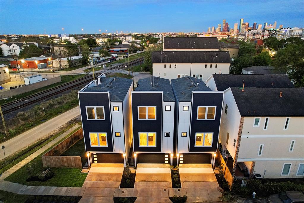 Beautiful Brand New Construction in the heart of Rice Military! This modern contemporary stunner is a completely freestanding home w/ a 2 car garage & your own private driveway. The gated side entry offers security & privacy, while warm travertine flooring welcomes you in through the custom front door. The generous 1st floor bedroom suite is perfect for a study or guest room & allows you access to your private backyard. The 2nd floor opens to an expansive living/dining/kitchen space perfect for entertaining. High ceilings, an abundance of natural light & high end fixtures create a sense of modern elegance. Kitchen features custom cabinetry built on site & smart LG appliances. Finally, enter the owner's retreat w/ your own private balcony and luxury en suite bath. Relax in the freestanding soaking tub, enjoy the spacious double sink vanity & the wall mounted waterfall rain shower system. Near Memorial Park & all the best dining, entertainment & nightlife the city has to offer.