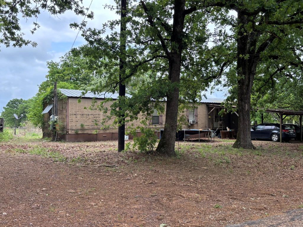 Come see the picturesque East Texas Ranchette. So much opportunity all in one package. 2798sqft home, 3 bedrooms, 2 full bathrooms, 3-car carport with over 1000sqft concreted parking. The home is in living condition, but is mainly in its original build format and could use updating. The home offer two large family or living room areas. One being an open concept grand living room boasting of a built in bricked, wood burning fireplace with external entry points from the front and back doors and internal entry point from the kitchen and hallway to the bed & bath rooms. The home flooring includes tile throughout the living and wet areas and carpet in the bedrooms. The property consists 6.9 beautiful acres. Fenced and gated coral area with barn measuring approx 25x60. The main portion of the barn is open poll, but also has 3 concrete floored rooms for tack, storage, or medical, along with 2 enclosed horse stall areas, with water & electric to barn. Existing 896sqft manufactured home at south end of property off CR 3520. Multiple outdoor storage sheds on property and built in storage under carport. The parcel is partially treed with gigantic oaks and other large native trees, but mostly open rolling pasture. Need even more space? The adjacent 10.85 acres is also available at $149,000 (under 14k per acre) NTREIS MLS 21238865. Come grab you personal piece of East Texas while it is still available. This opportunity is priced to sell. Do not delay. Schedule a tour today.