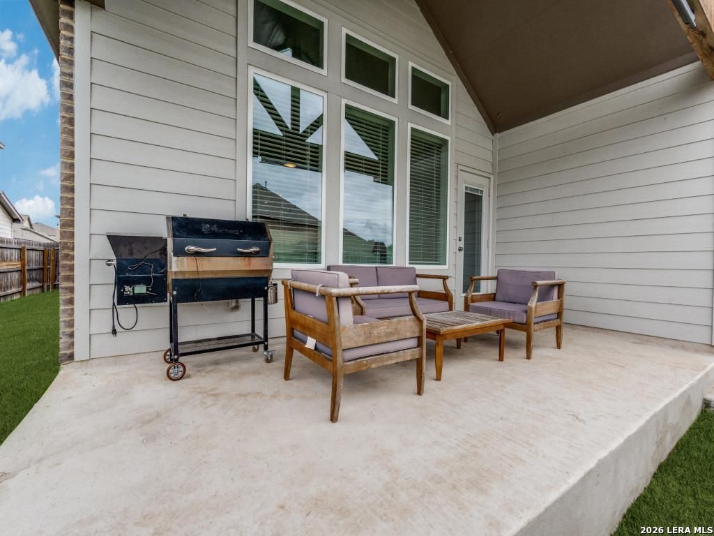 Like-new Chesmar home in the highly desirable Highland Grove community! Built in 2023, this bright and inviting single-story residence features an open-concept design with 3 bedrooms, 2 full bathrooms, a spacious flex room that could be office or media/gameroom, and an extended 2.5-car garage-perfect for extra storage or a workshop. The home showcases numerous upgrades and thoughtful details, including upgraded tile flooring, granite countertops, gas cooking, tankless water heater, water softener, a large walk-in pantry, vaulted ceilings, and lots of windows and natural light. The primary suite offers a private retreat with a tray ceiling, dual vanities, an oversized walk-in closet, and a separate, glass-enclosed extended walk-in shower. Step outside to a beautifully designed backyard featuring a vaulted covered patio-perfect for relaxing or entertaining guests. Residents of Highland Grove enjoy amenities such as a community pool, park, picnic areas, and walking trails. Ideally locate