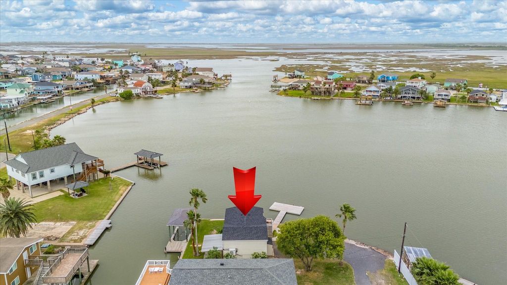 Welcome to your private point lot with stunning views! This 2-2 property features a boat house, large walk out pier, and an upstairs covered deck. Interior offers open plan with focus on the views! Entertain your guests at the bar while preparing light bites or gourmet meal. Downstairs includes open space private suite with bedroom, study and full bath. Possibilities are endless. Enjoy fireworks on July 4th and New Year's Eve while fishing and bird watching in paradise on the two downstairs and one upstairs covered decks. The roof and laminate flooring were updated in 2024, along with 3 mini splits in 2023. Additional updates include decks on the boathouse and fishing dock, a gas range in the kitchen, breakfast bar, and cement board siding, freshly painted. Perfect for those seeking a waterfront retreat with modern amenities and Spectacular Views!