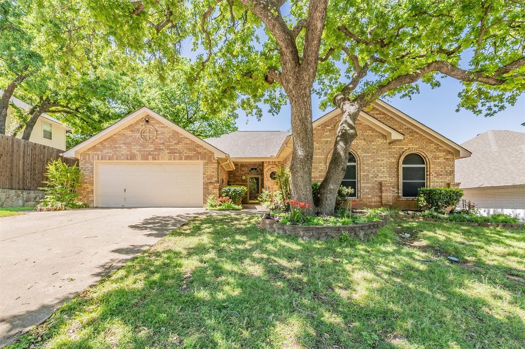 Super Cute, move-in ready, and ideally located, this charming single-story home is ready to welcome you! Step inside to a spacious formal dining room, perfect for gathering with family and friends. The home offers not one, but two generous living areas, including a cozy main living room with a fireplace and a secondary living space ideal for relaxing or entertaining. The kitchen is designed for both function and style, featuring a large breakfast bar, abundant cabinetry, and an electric cooktop and oven, perfect for bringing out your inner chef. The oversized primary suite serves as a true retreat, complete with an ensuite bathroom offering dual sinks, a separate shower, a jetted tub, and a large walk-in closet. Three additional full-sized bedrooms and a secondary full bath provide flexibility for family, guests, or a home office setup. Step outside to a spacious backyard featuring a covered patio, perfect for enjoying quiet evenings, and a large grassy area ideal for play, pets, or outdoor entertaining. A convenient storage shed adds extra space to keep tools and equipment organized while keeping the garage clutter-free. Located within Hurst-Euless-Bedford ISD and just minutes from Highway 183, parks, schools, shopping, dining, and more, this home offers both comfort and convenience. Move-in ready and perfectly situated, come see it today, this one won’t last long!