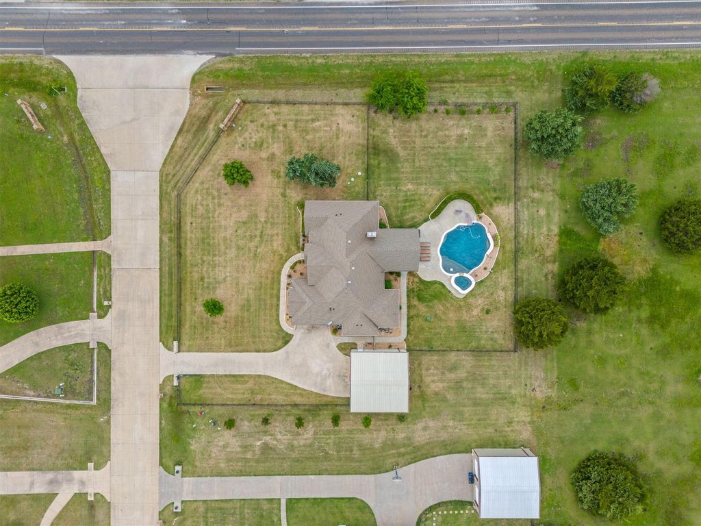 Country home outside the city limits in Royse City on 1.583 acres with a gated corner lot, inviting front porch and easy-maintenance landscaping. No HOA! Built in 2014, this well-kept 2,242 sq ft home offers 3 bedrooms, 2.5 baths and a dedicated office with french doors. Open-concept living, breakfast, and kitchen areas feature a center island with breakfast bar seating, stone accents, upgraded cabinetry, stainless steel appliances, a built-in gas cooktop, neutral counters and a cozy gas fireplace. The primary suite includes a walk-in shower, relaxing clawfoot tub, double sinks and vanities, beautiful tile work and a walk-in closet with direct access to the laundry room. Two secondary bedrooms share a Jack-and-Jill bath, and a separate half bath serves guests. Exceptional outdoor living with a covered patio, stone fireplace, bar seating, and views of the sparkling pool and spa. Fenced in backyard with plenty of room for playsets, pets or recreation! Additional features include a two-car garage plus a 30x30 insulated shop with double doors, electricity, and lighting. Front perimeter fencing with automated entry gate and extensive concrete parking provide convenience and functionality. A rare blend of privacy, space, and modern comfort just minutes from town!