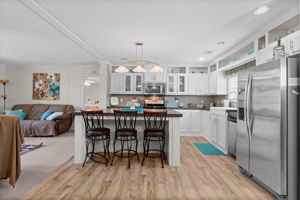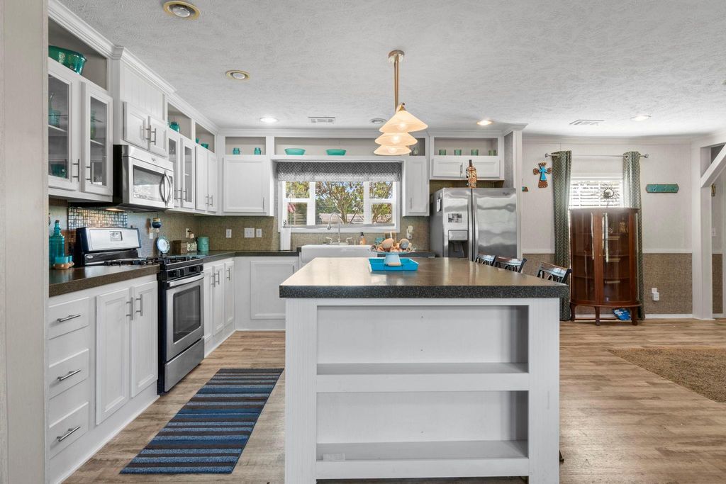 Discover wide-open living with this 12.32± acre unrestricted property located in the Onalaska area, just minutes from Lake Livingston. The well-maintained 3-bedroom, 2.5-bath manufactured home offers 1,664 SF of comfortable living space with a spacious open-concept layout. The kitchen is a true centerpiece, featuring a massive island, farmhouse-style sink, and gas stove — perfect for both everyday living and entertaining. The primary suite provides a relaxing retreat with its soaking tub, walk-in shower, and dual sinks. Bed2/3 share a convenient dual-entry bathroom. Fenced pastures are ready for livestock, while multiple outbuildings provide ample storage for tack, tools, or yard equipment. With plenty of room to expand, this property offers endless possibilities — from hobby farming to building additional structures. 20 minutes to Livingston, and only 30 minutes to Huntsville. Come explore all this property has to offer — country living close to the lake!