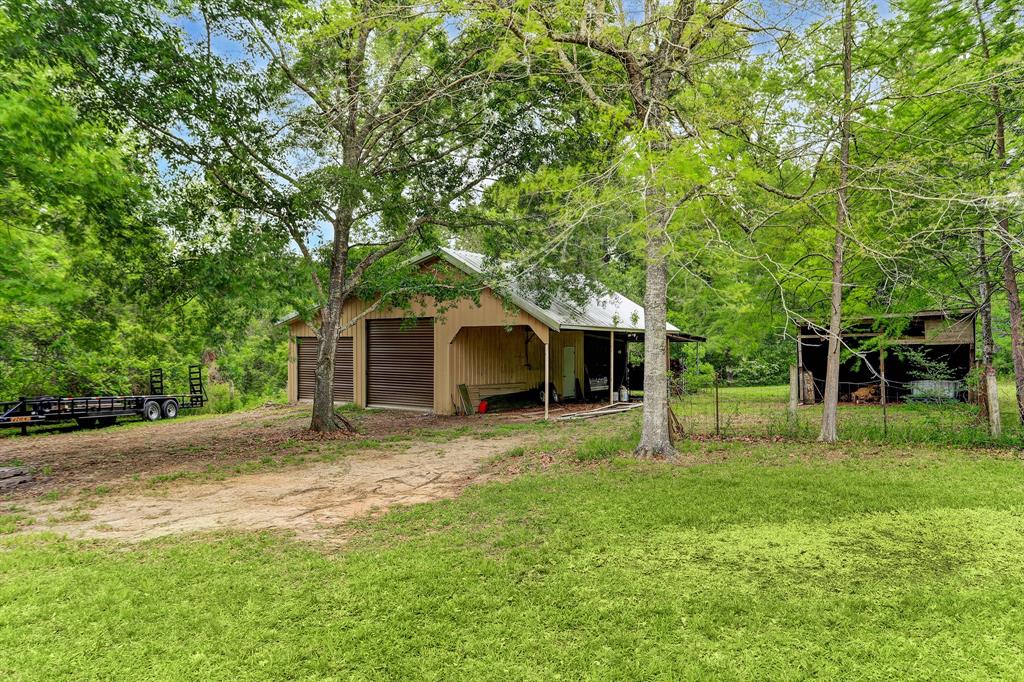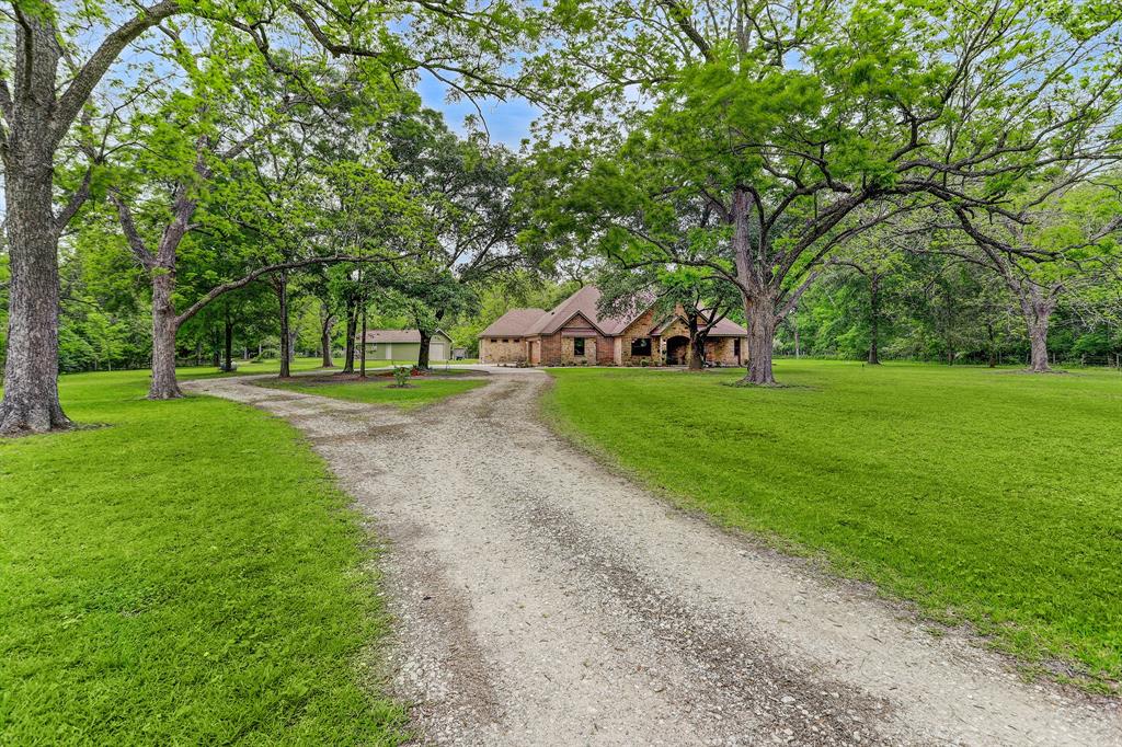 Enter through the dreamy tree-lined drive and arrive at your very own ranch-style paradise on 6 acres complete with 3 bedrooms/2.5 baths plus a study AND 600 sq ft flex room, a pool, covered patio, workshop and barn! Zoned to highly acclaimed Barbers Hill ISD. From the custom cabinetry throughout the home to the stained woodwork framing out every window and doorway, the attention to detail and craftsmanship is exceptional! The living room is breathtaking with a cathedral ceiling, wood beams and custom stone fireplace. The primary suit checks all the boxes with a coffered stained wood ceiling, walk-in shower and soaking tub, huge closet with built-in shelves and drawers as well as another walk-in closet and walkthrough to the utility room. All bedrooms have walk-in closets and the large flex room has walk-out attic storage. All bathrooms have copper sinks and granite countertops. This home as it ALL!