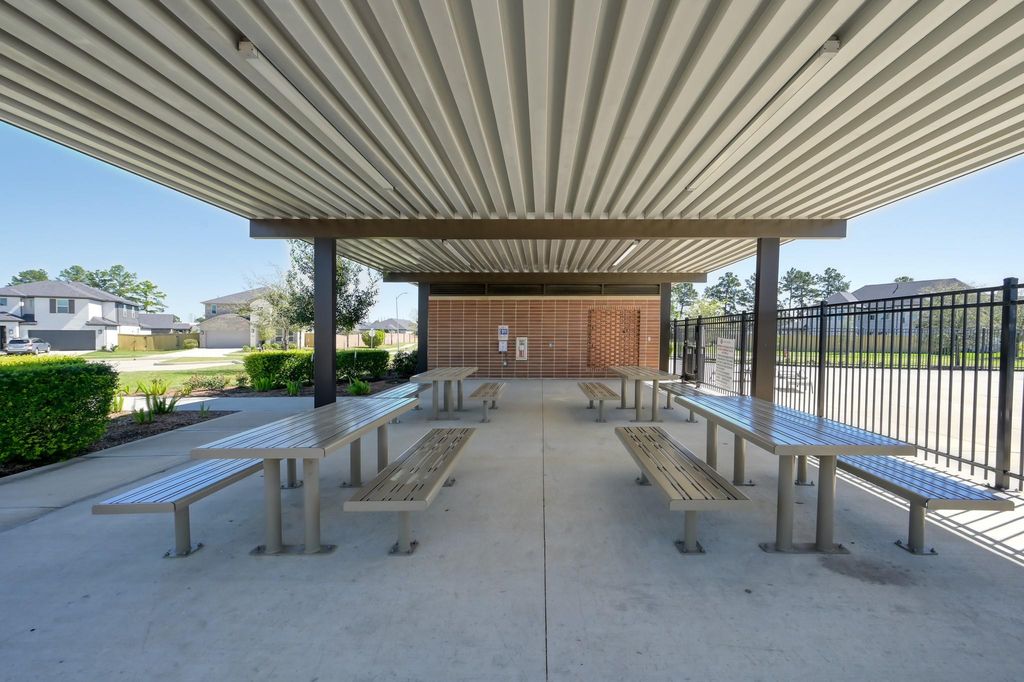 Practically new 2023 Juneberry floor plan on a cul-de-sac in Raburn Reserve offering 3-4 bedrooms and a highly desirable open-concept layout. Welcoming entry leads to a spacious living room filled with natural light that flows into a large kitchen featuring an oversized quartz island, pendant lighting, stainless steel appliances, abundant cabinet and countertop space, walk-in pantry, and separate breakfast area. Private primary suite with ensuite bath offers dual sinks, a large shower, and a generous walk-in closet. Secondary bedrooms are split from the primary for added privacy. Optional 4th bedroom currently used as a home office with custom built-ins. Loaded with upgrades including LVP flooring in all high traffic areas, high ceilings , 8 ft doors, upgraded tile, countertops, fixtures, tankless water heater, epoxy garage floor, storage shed, and sprinkler system. Enjoy the covered back patio with paver extension and large yard. Zoned to highly acclaimed Tomball ISD.