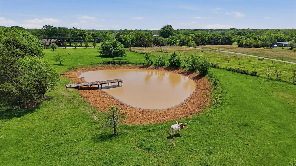 One of the most picturesque properties is now available. 13.65 breathtaking acres located within minutes of downtown Pottsboro and Lake Texoma, but outside the city limits. The property is fenced and cross fenced with a half acre stocked pond offering abundant pastureland for horses or livestock. This land currently has an ag exemption and is not in a flood zone. Also includes a 50x30 insulated metal building living quarters with full kitchen and bathroom and an attached 600sf covered patio perfect for morning coffee or evening cocktail while enjoying the Texas sky. Ideal for a weekend getaway or temporary residence while building your dream home. The house pad is already established. The Deep Well with whole house Culligan Water Filtration System provides water to the home and gardens. Additional Reverse Osmosis filter under the kitchen sink. Septic system with 1,000 gallon tank and drain field large enough to handle your new home and the metal building living quarters. Zoned HVAC. The pond has a dock to fish from and is stocked with catfish and perch. There are two storage containers in the pasture for feed and supplies. There is shooting berm at the back of the property. This property is a hidden gem minutes from one of the best recreational lakes in Texas, with easy access to the Metroplex, and within the very popular Pottsboro ISD. With the Barndominium this property offers immediate useability and space for your long term plans. Call your favorite realtor to schedule a visit. It's time to claim your slice of the Texas countryside.