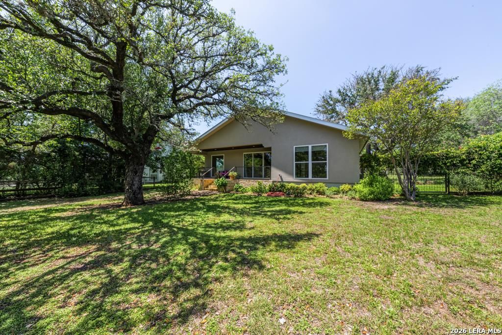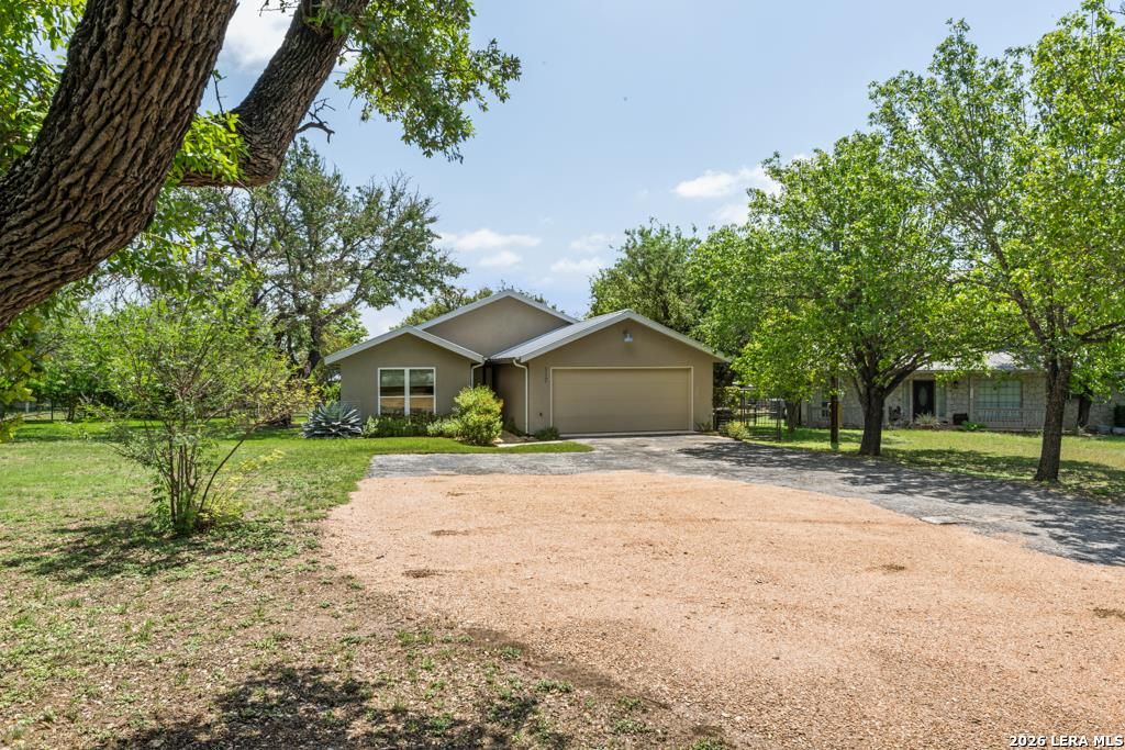 The home features a functional, ranch-style layout designed for efficiency and comfort. Living Spaces: The interior often features beautiful wood look tile. Common to this build style in the high ceilings in the main living area, providing a spring like vibe. The Kitchen: Includes a breakfast bar, maintaining an open feel toward the living quarters. The master bedroom includes an ensuite bathroom and is sized to accommodate standard suite furniture comfortably. The standout feature of this property is the expansive 0.78-acre lot. The property is heavily wooded with mature native trees, offering significant natural privacy from neighbors. Located on Woodland Blvd, the topography is characteristic of the Texas Hill Country-level to gently sloping with rocky, well-draining soil. The exterior is primarily wood siding with a slab foundation and a Standing Seam Metal roof, blending into the natural environment of the Ranger Creek area.