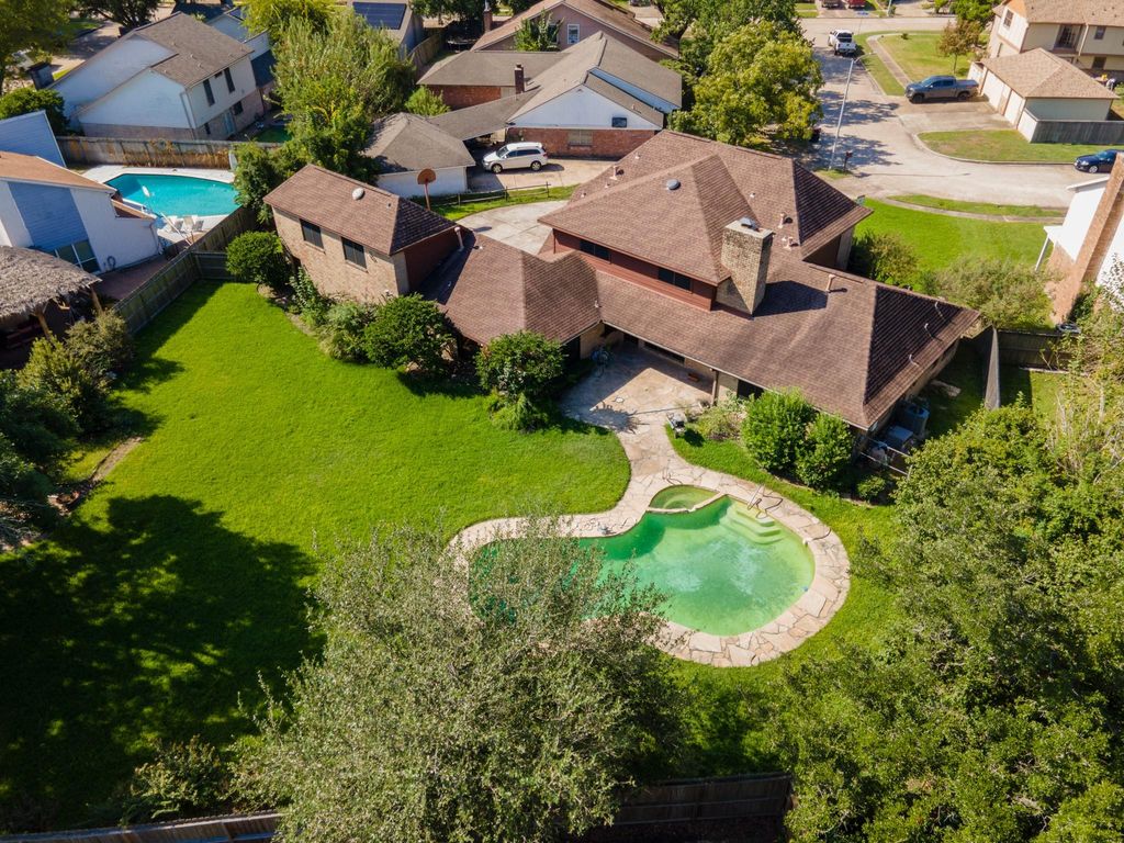 Welcome to 3 Thunderbird Circle in charming Baytown, Texas where luxury, space, and comfort all come together. This stunning 5-bed, 4½-bath residence sits on nearly a half-acre lot in a tranquil cul-de-sac and offers 4,460 square feetof elegant living. Step inside to discover beautifully renovated finishes: wood-look tile graces the first floor, and the upstairs carpet has been freshly updated. The kitchen shines with granite countertops and a stylish new backsplash. Need extra living space? This property includes a garage apartment—perfect for extended family, guests, or even a home office complete with its own fully renovated bathroom. Outside, your private oasis awaits: a spacious backyard and a huge in-ground pool—ideal for relaxing, entertaining, or enjoying Texas summers. With its combination of size, upgrades, location, and unique features, this home is truly one-of-a-kind. Don’t miss your chance. Schedule a tour today! Hablo espanol.