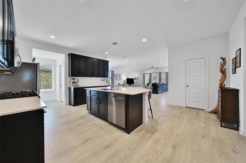 Lightly lived in MODERN one-story home located at the END OF THE CUL-DE-SAC on an OVERSIZED LOT with NO BACK NEIGHBORS. Vinyl plank flooring in the entry, kitchen, dining area & family room. Very popular Kingston OPEN FLOOR PLAN. Large kitchen includes Silestone countertops, 4 burner gas cooktop, 42 inch painted cabinets, stainless steel Whirlpool appliances, island & tons of cabinets for storage. Kitchen refrigerator, washer & dryer are INCLUDED! Spacious family room. HUGE PRIMARY SUITE with a large walk-in shower. Double pane, vinyl windows, TANKLESS WATER HEATER & TechShield = VERY ENERGY EFFICIENT. Covered front & back patios with EPOXY FLOORING...the garage also! GUTTERS. Smart Home features. Easy access to Interstate 10 & the West Park Tollway. Zoned for FULSHEAR HIGH SCHOOL. No disappointments.