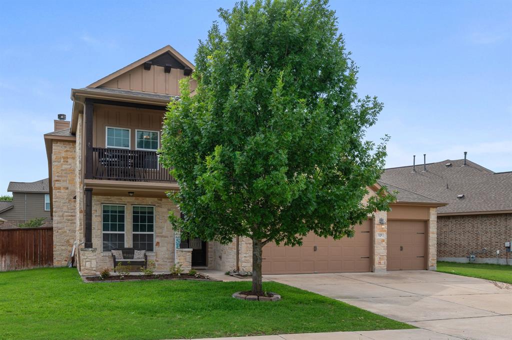 Welcome to this stunning 4-bedroom, 2.5-bath home in the highly sought-after community of Santa Rita Ranch in Georgetown, TX. This beautifully designed residence offers an expansive open floorplan with soaring ceilings, creating a light and airy atmosphere perfect for both everyday living and entertaining. The spacious kitchen at the heart of the home features a large center island with breakfast bar, gleaming granite countertops, and seamless flow into the living and dining areas. The living room boasts a cozy fireplace, while the dining room is framed by a wall of windows that flood the space with natural light. Elegant wood flooring extends throughout the main floor living areas, enhancing the home’s warmth and charm. The primary suite, conveniently located on the main floor, includes a generous ensuite bath with dual vanities, a luxurious soaking tub, and a separate walk-in shower. A dedicated home office and a half bath complete the main level. Upstairs, enjoy a spacious loft lounge area, an inviting media room perfect for movie nights, and a balcony overlooking the peaceful neighborhood. Three additional bedrooms and a full bath provide plenty of space for family or guests. Wander outside to a covered, extended back patio—ideal for relaxing or hosting gatherings. A 3-car garage offers ample storage and convenience. Residents of Middle Brook Ranch enjoy resort-style amenities, including a sparkling pool, splash pad, sport courts, playgrounds, and scenic park spaces. Don’t miss your chance to call this exceptional property home!