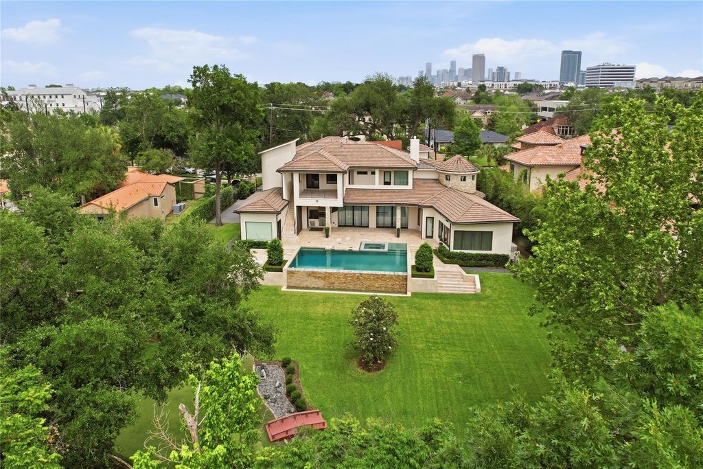Designed by Hollenbeck Architects and built by David Gunn, this custom home exudes luxury living in the heart of Houston. Situated in the highly sought after Glenwood Cove this home has it all. The chef’s kitchen features a Wolf gas range, Miele coffee maker, and an oversized island with prep sink. The main living area features soaring ceilings, gas fireplace, and Crestron whole-house control system, flowing into a stunning formal dining room. The primary suite is located downstairs with a spa-like bath, projector screen, walk-in shower, double vanities, and a custom closet. Additional first-floor highlights include a home office, workout room, and wine storage. Upstairs game room features a golf simulator, covered balcony, and three secondary bedrooms with ensuite baths. A dedicated meditation/yoga room adds flexibility. The spacious backyard is designed for entertaining with an infinity pool, attached spa, turfed putting green, and outdoor kitchen. Just a short walk to Memorial Park!