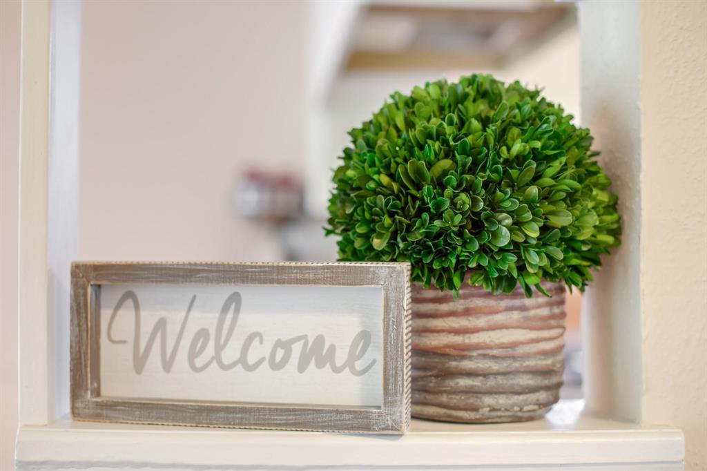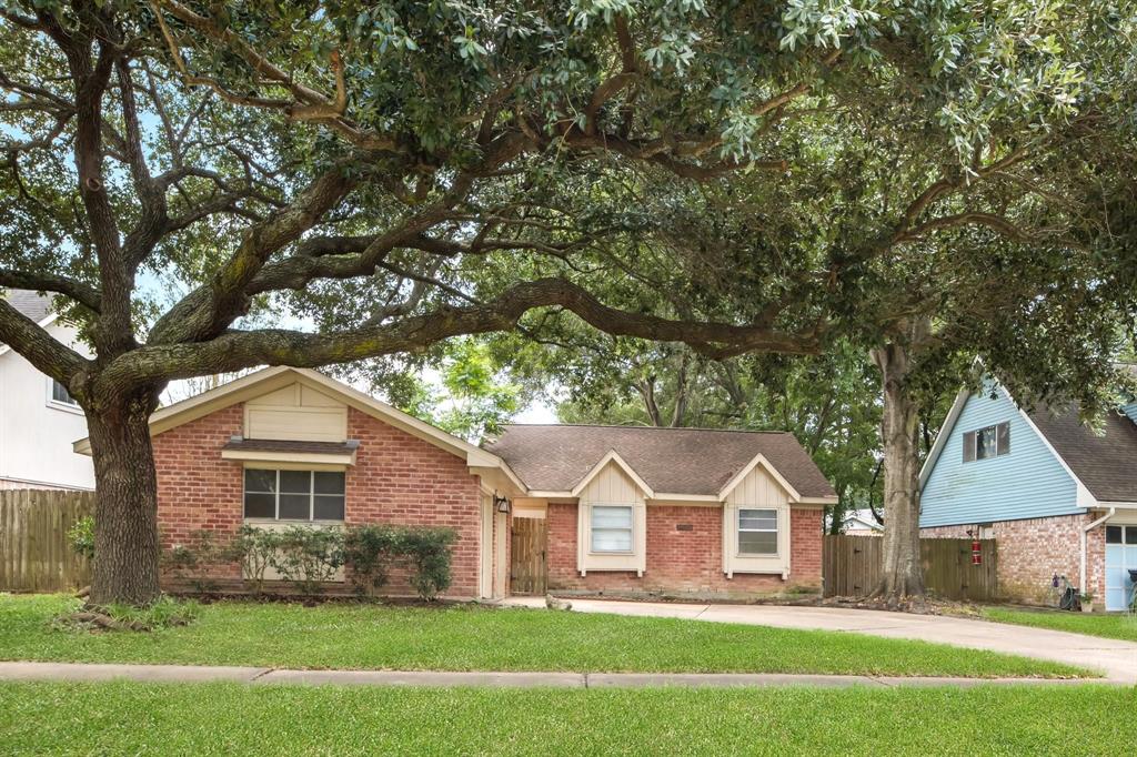 Affordable single story home located in highly desirable Covington Woods on a private, cul-de-sac street. Centrally located with easy access to Highway 90, Highway 6, and Interstate 59. Large trees provide shade in the Texas heat for this beautiful home! The oversized detached garage has additional storage and workspace. Large living room with corner brick fireplace. The sliding glass doors at the dining area lead to the private courtyard for indoor/outdoor entertainment. Covered back patio off the living room. Hand-scraped engineered wood flooring throughout this spacious home. Kitchen has classic white cabinets with tiled floors and modern white subway backsplash. Brand new oven. Master suite located at the back of the home with generous walk-in closet. Two sinks and vanity seating in the master bathroom. A secondary bedroom has a walk-in closet and built-in shelves. Easy to maintain. Convenient location. Private cul-de-sac street. Click "Chat Now" to see this home!