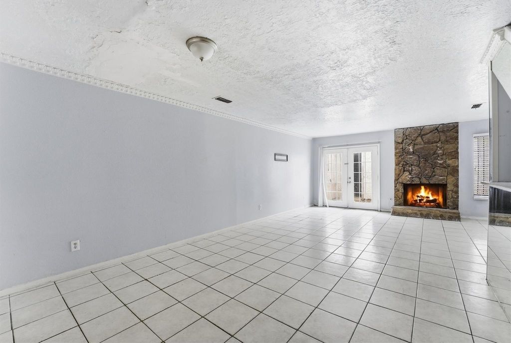 Located in Pine Village North, this 1,190 sq. ft. townhouse features 2 bedrooms and 2.5 bathrooms. The first floor includes an open-concept living area with ceramic tile flooring, a galley kitchen with a dishwasher, and French doors leading to the exterior. The utility area is situated on-site for convenience. The second floor contains both bedrooms with wood-look laminate flooring and neutral paint. Features include a primary suite with a large tub and separate shower, while the second bedroom offers dual closets and a ceiling fan. This property is zoned to Aldine ISD and is located near I-69 and IAH.