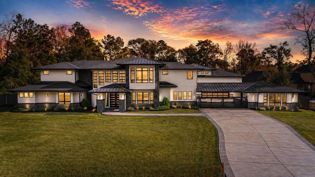 This striking estate redefines modern luxury with over 11,000 sq ft under roof, blending architectural intention, craftsmanship, and resort-style living into one commanding presence. Throughout the residence, Italian-imported tile delivers an elevated finish that speaks to refinement & timeless design. The outdoor living experience is extraordinary. A pool framed by a dramatic rock wall water fountain, glowing fire bowls, & hot tub creates a striking backdrop for both relaxation & entertaining. A custom Texas-shaped putting green adds recreation. Completing the estate is a fully equipped outdoor kitchen featuring a Viking grill, flat top, built-in smoker, and refrigerator, seamlessly connecting indoor & outdoor living. A massive attached garage spanning 3,600 sq ft paired with a secondary garage, offers unmatched versatility for collectors. This is more than a home—it is a statement of scale & lifestyle. Designed for those who expect presence, privacy, & freedom to live expansively.