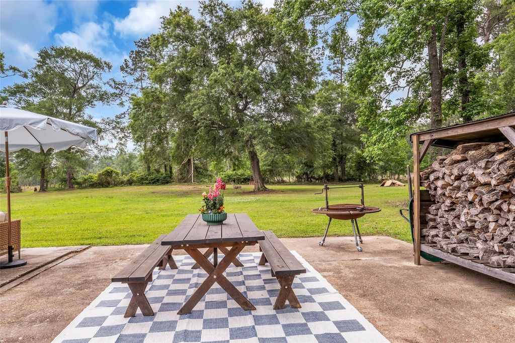 Welcome Home to 261 S Oakridge Drive sitting on 3.6 peaceful acres in Cleveland, TX! Charming country property in turnkey condition with many upgrades recently completed- AC & returns in family room & secondary bedroom, duct work, gutters, thermostat, well house rebuilt, garage door, surround sound in family room & kitchen, ceiling fans & light fixtures, hardware for kitchen cabinets & undermount lighting, butcher block countertops, Stainless Steel appliances, vinyl plank flooring, barn door, keyless entry on exterior doors. Extensive renovation in 2023- roof, exterior siding & siding underlayment, insulation, new paint inside & out, electrical, breaker panel, double paned argon filled windows, plumbing, doors, drywall, water heater, vanities, toilets, grading of property & more! Zoned Cleveland ISD. Additional room built onto garage with window unit-200 sq ft (not included in property sq/ft). Bring your chickens, goats, cows, donkeys & horses! Permanent easement runs behind property!