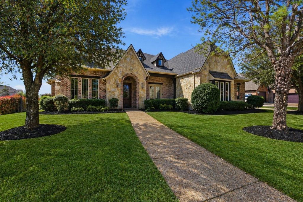 Tucked into the sought-after Silverleaf community, this custom one-story residence offers a rare blend of thoughtful design, elevated finishes, and meticulous care. Positioned on a corner lot, the home delivers a refined presence with a layout that lives beautifully. All bedrooms are privately separated, with three featuring their own ensuite baths, creating an ideal balance of comfort and privacy for guests or multi-generational living. Rich hand-scraped hardwood floors extend through the main living areas, now seamlessly carried into the executive office and primary suite for a cohesive and elevated aesthetic. The kitchen anchors the home with custom site-built cabinetry, granite surfaces, and professional-grade appliances, dishwasher replaced January 2025, opening naturally to the main living spaces designed for connection and everyday living. The primary suite offers a peaceful retreat with a spacious sitting area and a well-appointed bath featuring a jetted tub, frameless glass shower, dual vanities, and a generous walk-in closet. Architectural details throughout include extensive trim work, crown molding, solid core doors, and built-in features that reflect the craftsmanship of a true custom home. Recent updates provide confidence and long-term value, including a new roof installed summer 2025, both HVAC systems replaced in 2025, and a refreshed front entry with newly stained door and updated hardware. Built with efficiency in mind, the home is ENERGY STAR certified and part of the Green Built Texas program, offering enhanced performance, comfort, and energy savings. The outdoor spaces are designed for ease and enjoyment, featuring covered patios and a manageable yard that complements the home’s low-maintenance lifestyle. A rare opportunity to own a meticulously maintained, single-story custom home in one of Keller’s most desirable pocket neighborhoods.