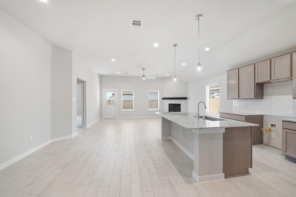 Located at 5618 Toledo Pines Lane, this 2,793 sq.ft. two-story home in Grand Mason Crossing offers an expansive layout with architectural detail and everyday functionality. Featuring 4 bedrooms and 3.5 baths, the design includes a private study on the first floor, a spacious upstairs game room, and a loft overlooking the family room for added flexibility. Soaring two-story ceilings in both the entry and family room create a dramatic first impression, while a gas fireplace anchors the living space. The open-concept kitchen features pendant lights over the island, white painted cabinetry, under-cabinet lighting, and a generously sized walk-in pantry that provides exceptional storage. Upstairs, one secondary bedroom includes its own private bath, offering a comfortable guest suite option.