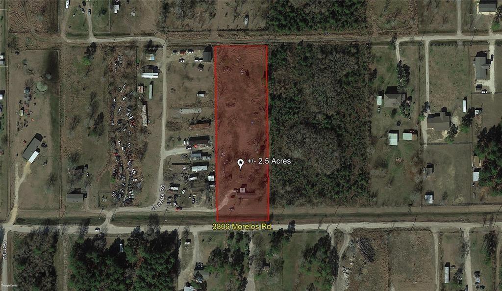 LAND ONLY +/- 2.5 acres, cleared and UNRESTRICTED. Mobile home and storage building to be moved before closing. Community water and propane gas. Road access to I-10 and Wade Rd.