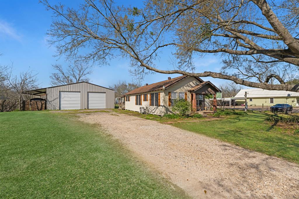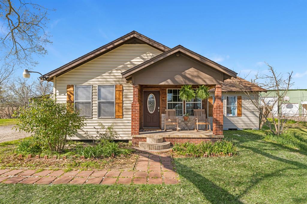 Nestled on 2.5 acres, this charming 4 bed, 2 bath home boasts a spacious shop and dual driveway access! The property is fully fenced and cross fenced, offering ample privacy and space for all your needs! Mature trees and outbuildings dot the expansive property! Cedar, brick and stone accents adorn the front porch for a warm welcome! Inside, neutral colors and solid wood accents create a cozy atmosphere. Living space opens to a dining area leading to the galley-style kitchen! Split floor plan with a flex space currently used as an additional living area just off the third bedroom! Natural light floods the home! Enjoy comfort and space here!