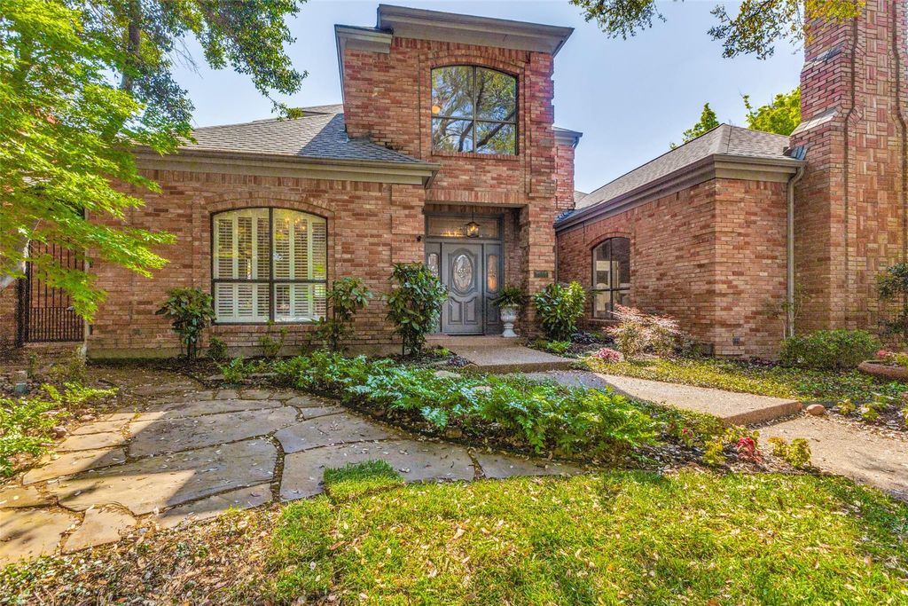 Located in the Lane Park neighborhood, a quiet, tree-lined community with a single entry, this impeccably maintained home offers privacy, charm, and an easy, livable floor plan. Featuring a first-floor primary suite with a fireplace, three bedrooms, and three full baths, along with two comfortable living areas and great flow throughout. A second fireplace adds warmth and character to the main living space. The dining room and kitchen open to a shaded front patio, with doors that create a seamless indoor-outdoor connection. The kitchen also overlooks the backyard, offering easy access to multiple outdoor living spaces—perfect for everyday living and entertaining. Set on a rare oversized lot, the beautifully landscaped yard is filled with blooming spring perennials. Natural light fills the home, highlighting the tasteful finishes and inviting spaces. A generously sized utility room adds everyday functionality. Additional features include a rear-entry oversized two-car garage and a well-appointed storage shed. Ideally located with convenient access to the Park Cities, Preston Hollow, and some of Dallas’ best shopping and dining. Truly move-in ready.