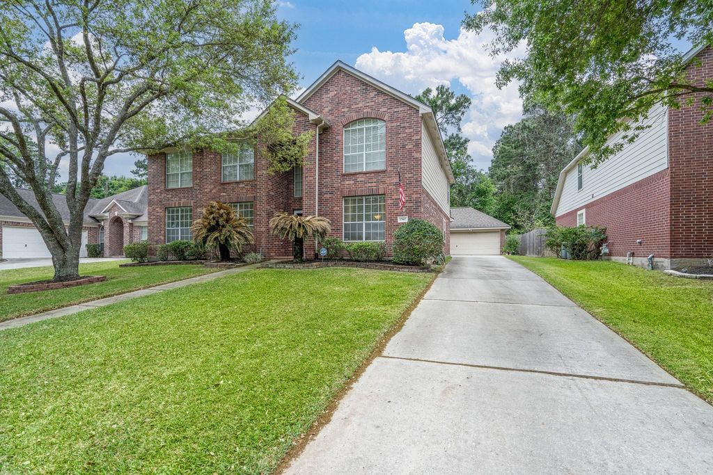 Welcome to this spacious 5-bedroom, 3.5-bath two-story home in the desirable Park at Glen Arbor. Offering 3,579 sqft, this home features a functional layout with soaring ceilings, a bright living room, and a central fireplace. The open-concept kitchen includes a large island, abundant cabinetry, and a breakfast area, flowing seamlessly into the main living space. A formal dining room with crown molding and a two-tone wall design, plus a dedicated dry bar, make entertaining easy. Additional flexible spaces include a formal living area or office and a large game room ideal for a media room, playroom, or home gym. The primary suite offers dual vanities, a soaking tub, and separate shower. Enjoy a spacious backyard with patio, storage shed, and no back neighbors. Conveniently located near The Woodlands, Cypress, and with easy access to Hwy 249, and zoned to the highly sought after Tomball ISD.