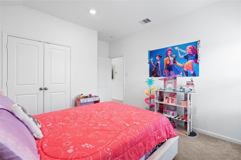 2 bedrooms & 2full bathrooms on the first floor, including a luxurious owner's suite w/large walk-in closet & ensuite bath featuring dual sinks. Secondary 1st-floor bedroom is perfect f/guests, aging parents, or a private home office setup, w/its own adjacent full bath f/added privacy & convenience. Open-concept layout connects the foyer, family room, dining area, & gourmet kitchen, making it ideal f/both entertaining &everyday living. Kitchen is a showstopper, w/stainless steel appliances, 42” upper cabinets, quartz countertops, a center island w/breakfast bar seating, & spacious pantry. The 2 level features 2 bedrooms, full bathroom w/double vanities, & a versatile game room/flex space—great f/a playroom, media space, or a 3rd bedroom. Durable luxury vinyl plank flooring in main living areas. Full irrigation system & a perfect sized yard ready f/outdoor enjoyment. Dual attic access available w/entry f/the flex space on the 2nd floor as well as in the garage!